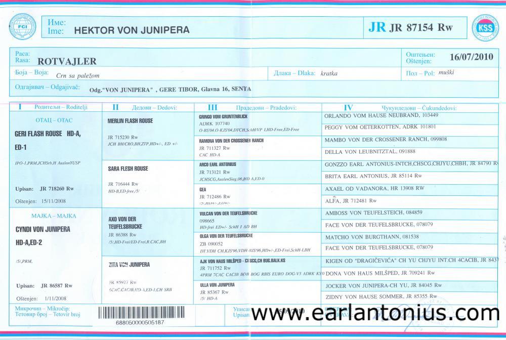 | Hektor Von Junipera's pedigree |