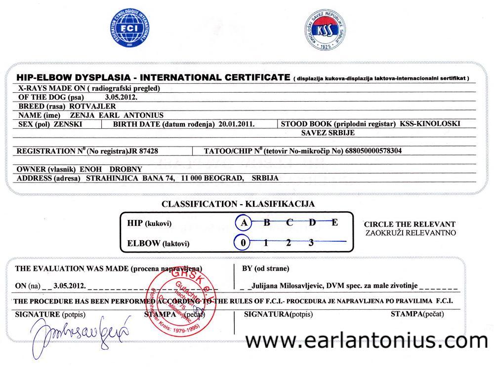 | Zenja Earl Antonius's pedigree |